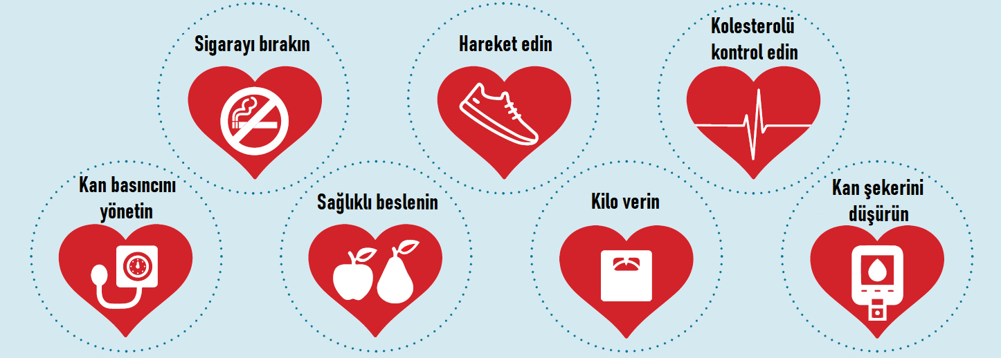- Kan basıncı, kolesterol ve kan şekeri düzenli olarak kontrol edilmeli; erken risk tespiti yapılmalı,